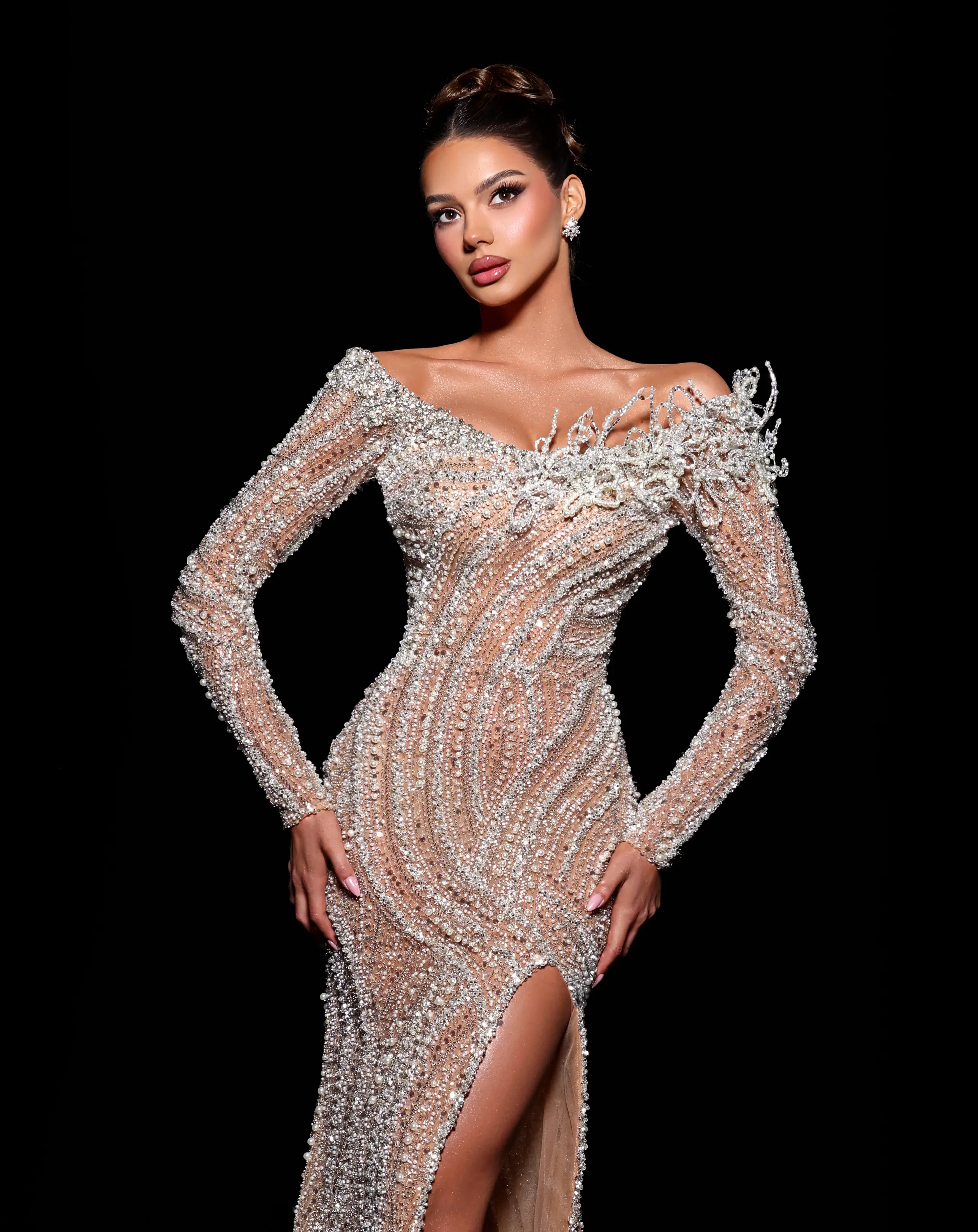 Fully covered in silver beadwork and sequins